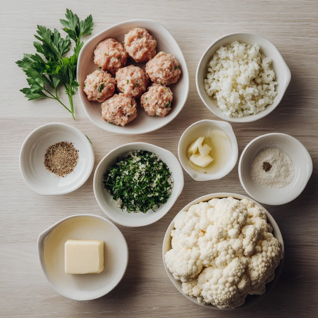 Ingredients for Garlic Butter Chicken Meatballs with Cauliflower Rice