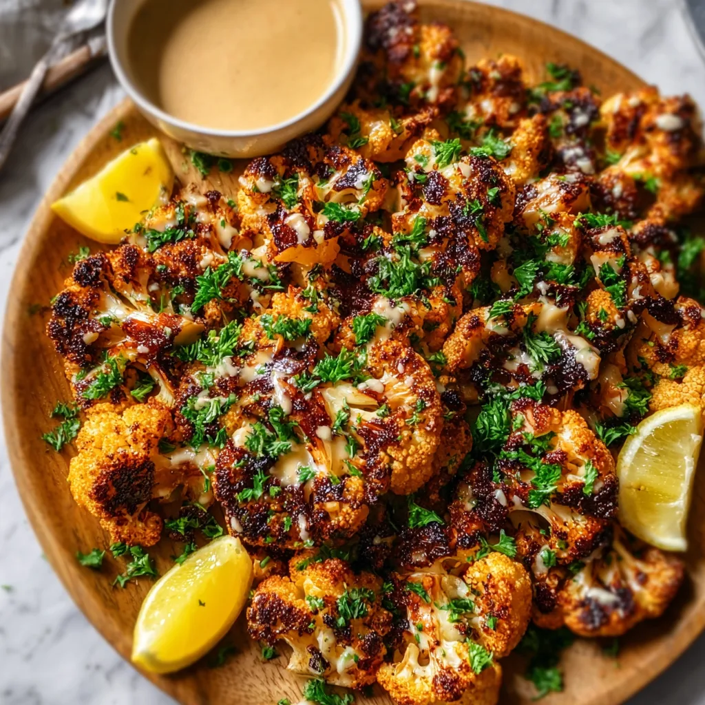 Store leftover cauliflower and sauce separately in airtight containers in the refrigerator. Reheat cauliflower in the oven to restore crispness, then drizzle with sauce before serving.