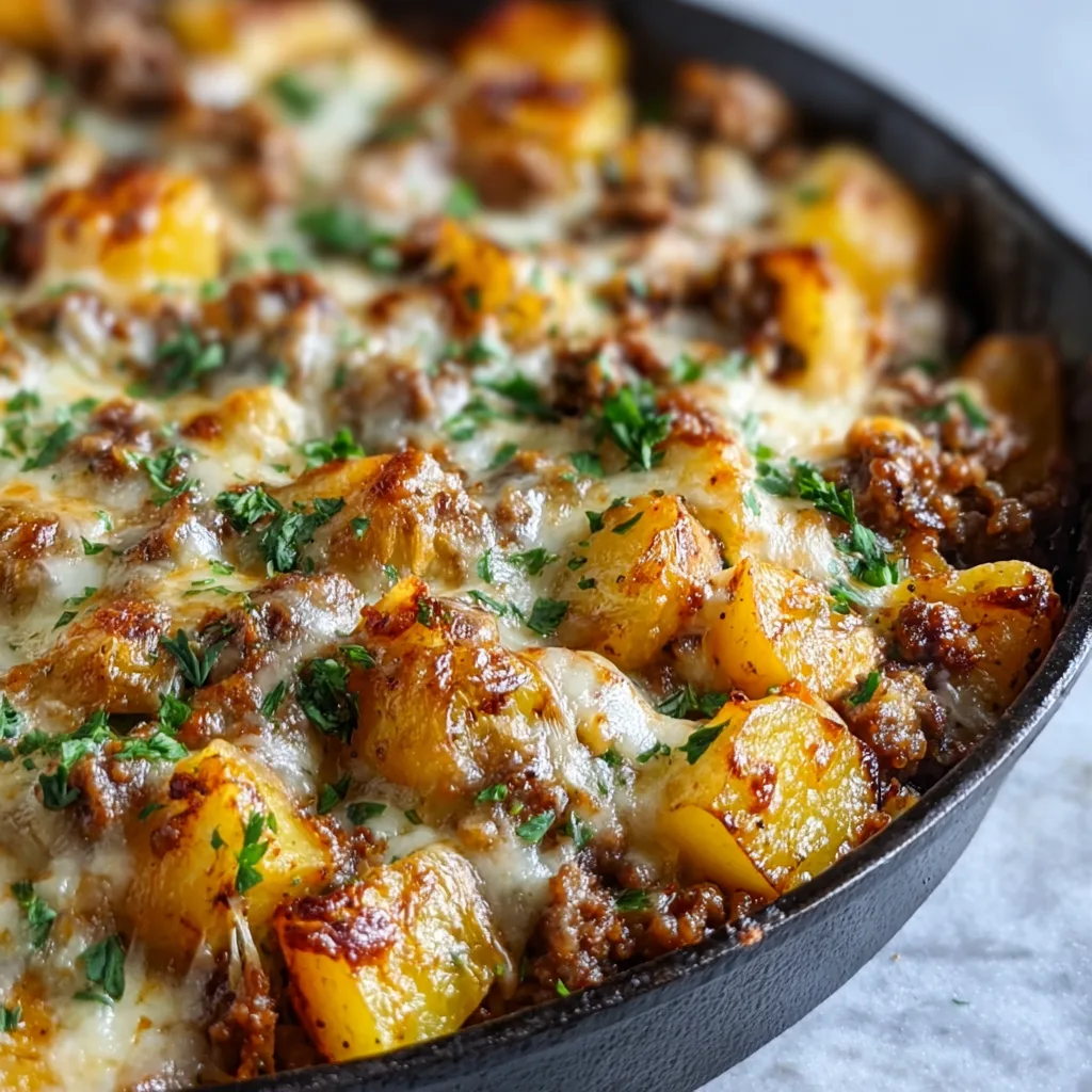 One Pan Cheesy Meat & Potato Skillet