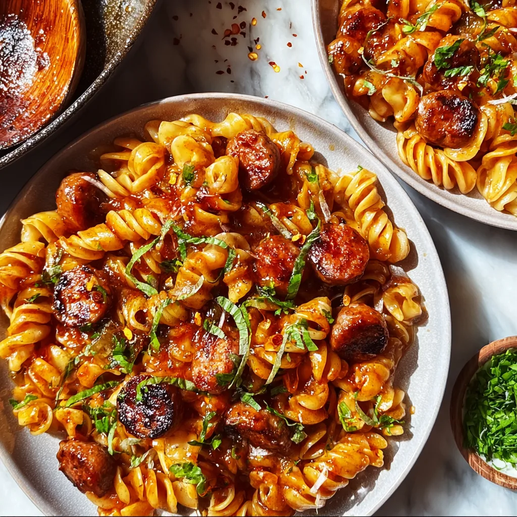One Skillet Spicy Honey BBQ Sausage & Pasta