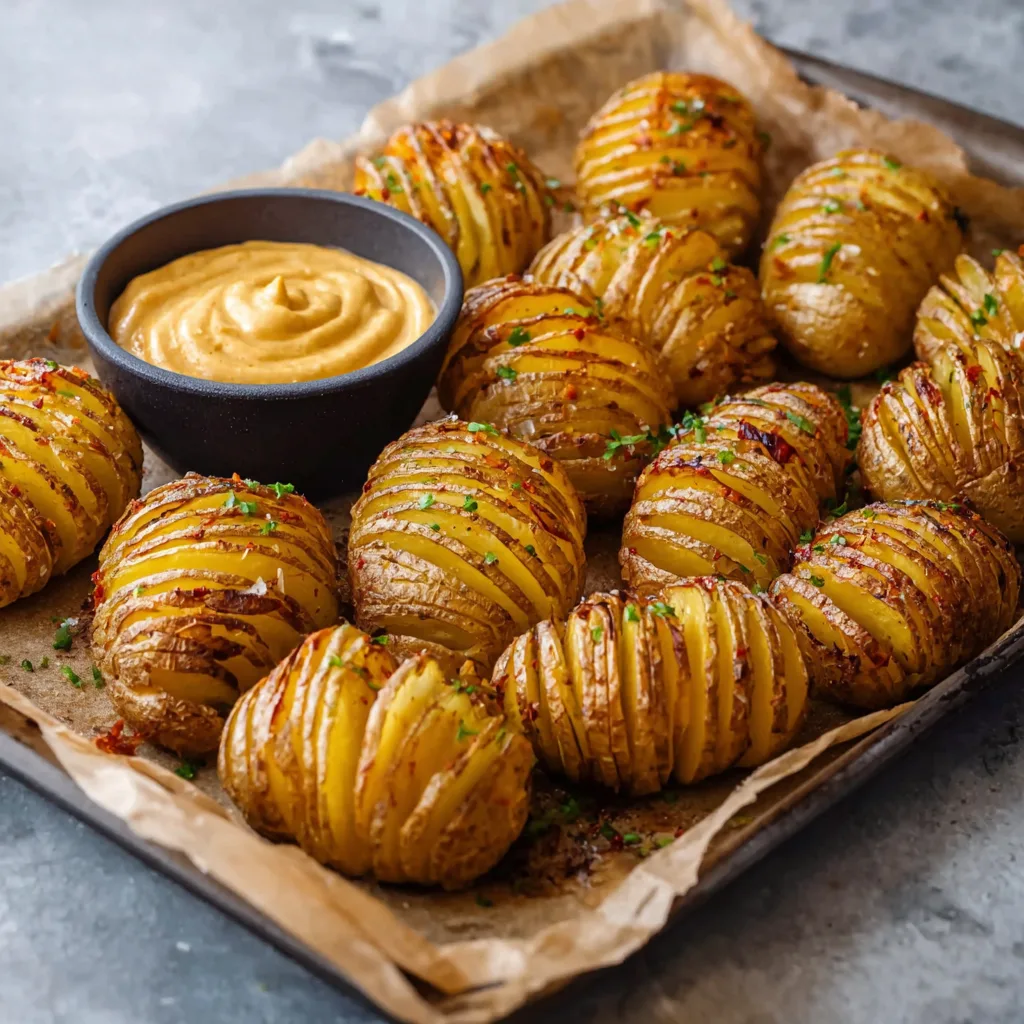 Oven-Baked Mini Hasselback Potatoes with Vegan Cajun Mayo