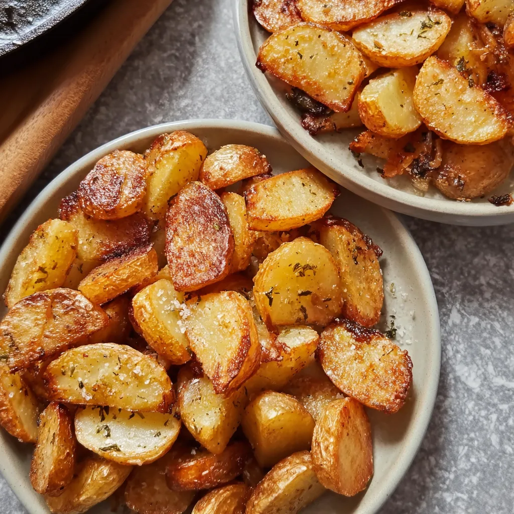 This recipe uses simple ingredients — potatoes, butter, oil, garlic, onion, salt, and pepper — but the technique is what makes them truly irresistible. With the right method, you’ll get golden, crispy edges without burning, tender centers without getting soggy, and that perfect pan-seared flavor only a stovetop skillet can create.