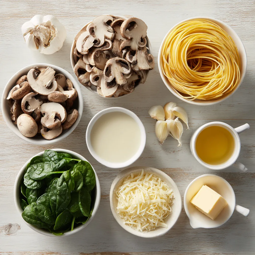 What sets this recipe apart is that everything cooks in the same pan — including the pasta. That means less cleanup, more flavor, and a richer, creamier sauce that forms naturally as the pasta releases starch into the broth. The result is a silky, restaurant-quality pasta dish that feels indulgent yet still balanced thanks to the earthy mushrooms and wilted spinach.