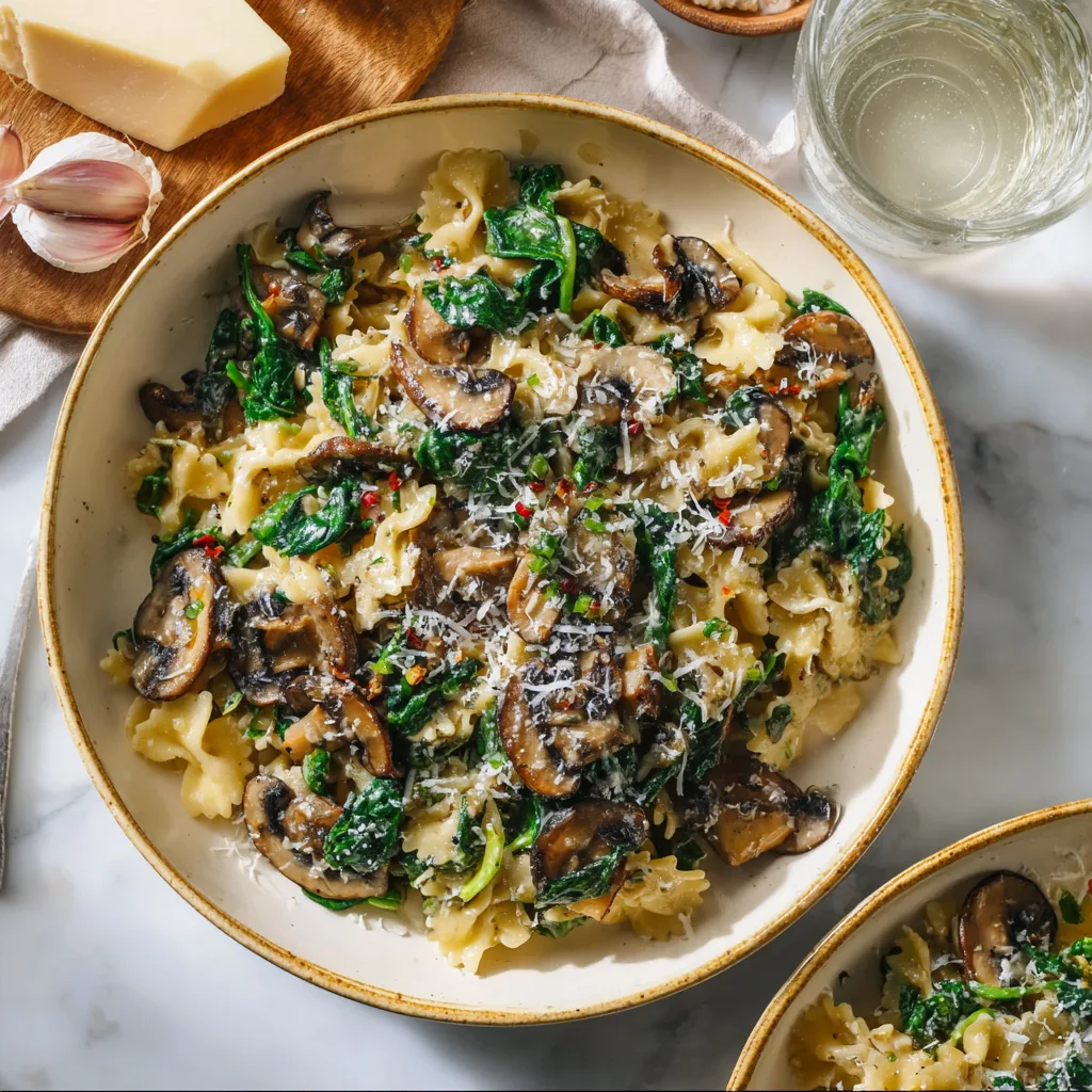 ⭐ How to Make Parmesan Spinach Mushroom Pasta Skillet