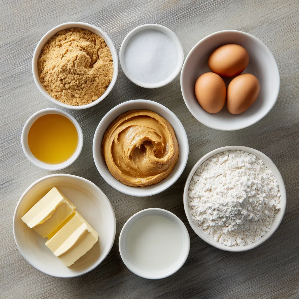 - Cream butter and peanut butter: In a large bowl, beat butter, peanut butter, and brown sugar until smooth and creamy. Add eggs one at a time, beating well after each addition. Stir in vanilla extract.