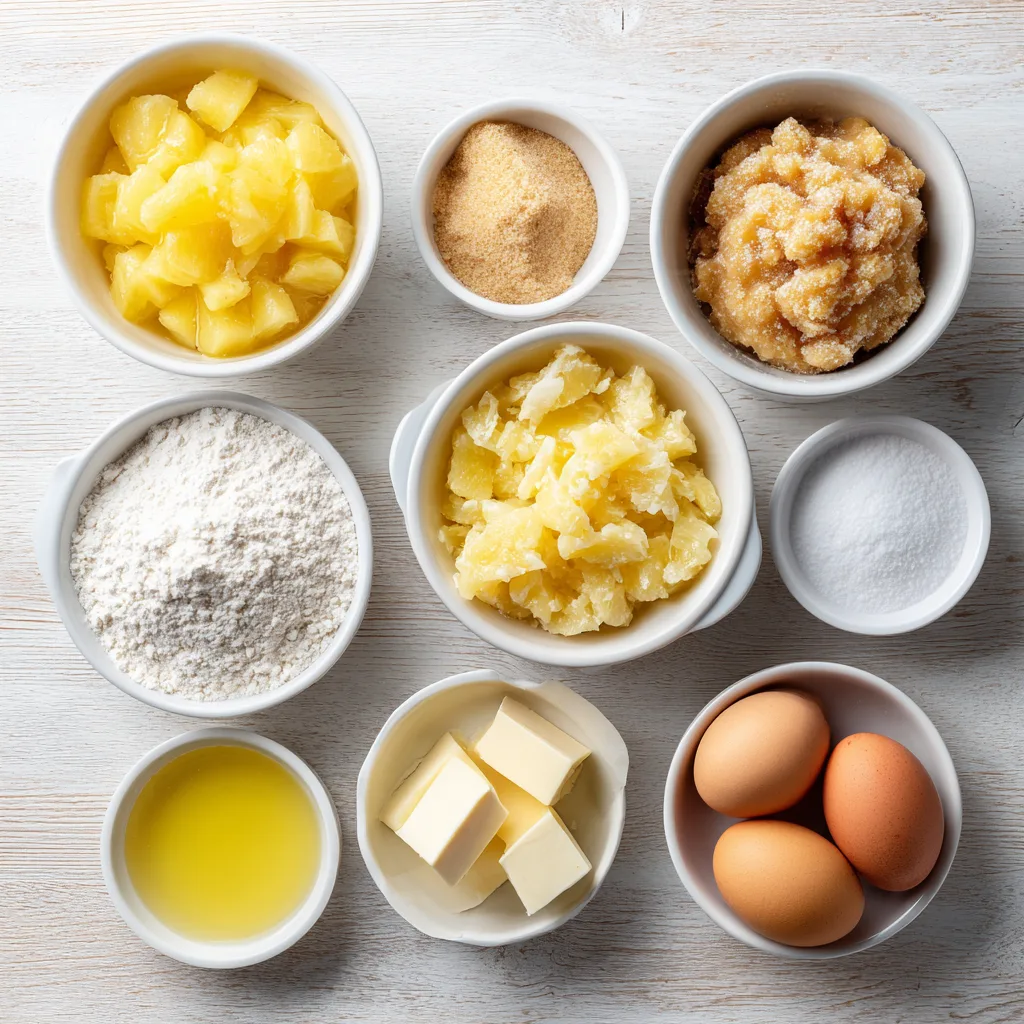 The crushed pineapple is essential — its fine texture blends seamlessly into the batter, ensuring moisture and sweetness in every bite.