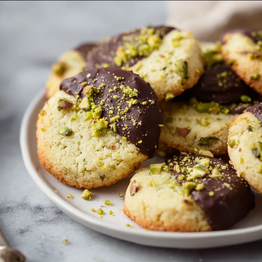 Pistachio Shortbread Cookies – Buttery, Crunchy, and Chocolate-Dipped