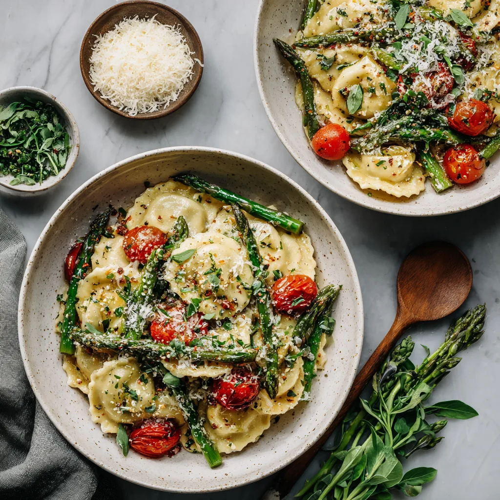 With tender ravioli, crisp asparagus, sweet tomatoes, and aromatic herbs, this recipe creates a light yet comforting meal that works for almost any occasion.