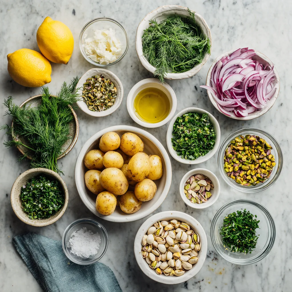Potatoes provide potassium, fiber, and complex carbohydrates for sustained energy. Olive oil adds heart-healthy fats, while fresh herbs contribute antioxidants. Pistachios bring protein and healthy fats, making this dish not just delicious but nourishing.