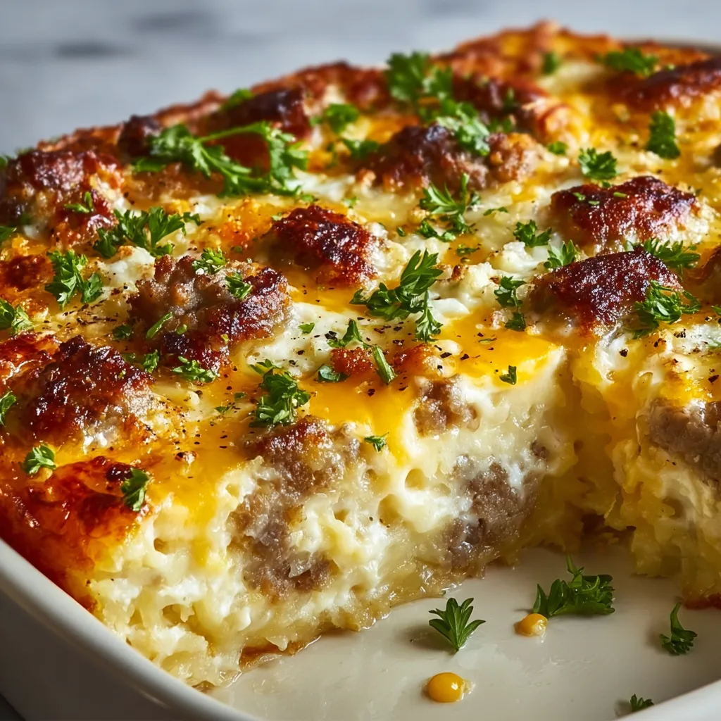 Sausage Egg and Cream Cheese Hashbrown Casserole – The Ultimate Comfort Breakfast
