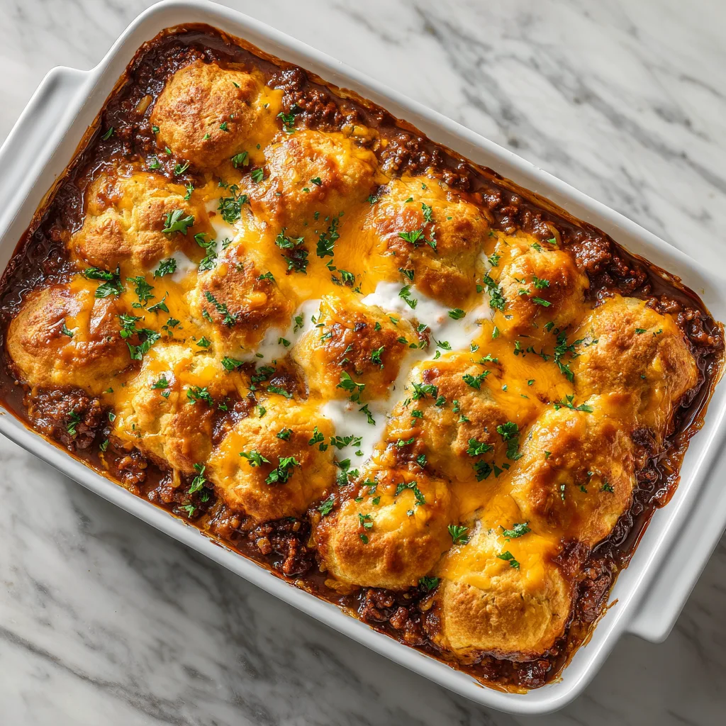 Timing is everything when it comes to the biscuit layer. Add them to the casserole after your meat mixture is fully cooked and properly seasoned, as they’ll only spend about fifteen minutes in the oven. Baking at 375°F ensures the biscuits cook through without burning while allowing the meat mixture underneath to stay hot and bubbly. You’ll know everything is ready when the biscuits turn deep golden brown and spring back lightly when touched. If the tops are browning too quickly before the biscuits cook through, tent the dish loosely with aluminum foil for the final few minutes.