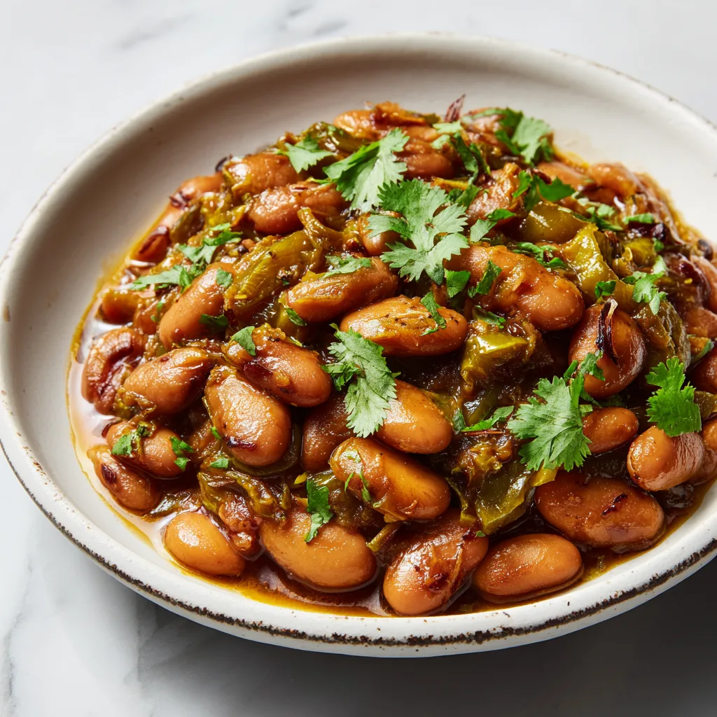 The green chiles in this recipe serve multiple purposes. They add flavor, of course, but they also contribute to the beans’ creamy texture. As the chiles break down during cooking, they release their natural starches and flavors into the liquid, helping create that signature thick, slightly viscous consistency that makes these beans so satisfying. The result is beans that are tender but not mushy, with a rich, flavorful broth that begs to be soaked up with warm tortillas or crusty bread.