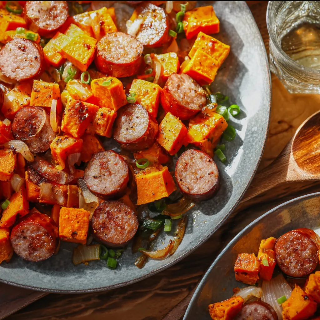Sweet potato + smoky sausage = unmatched flavor pairing.