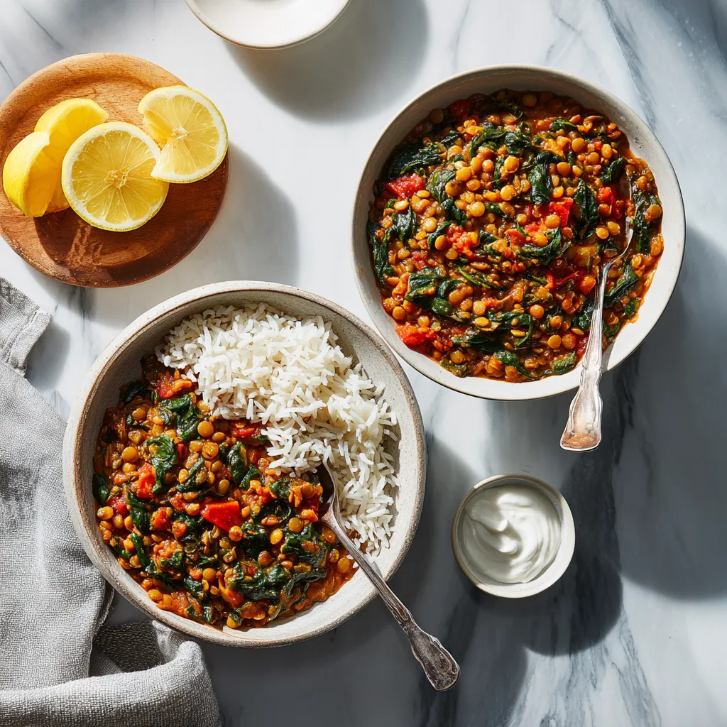 Lentils are packed with protein, fiber, and essential nutrients. Combined with spinach, they create a balanced and nourishing meal.
