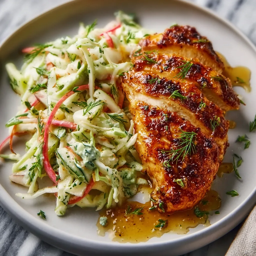 The crisp autumn slaw isn’t just a side — it’s a contrast. Cool, crunchy, lightly dressed, and vibrant, it cuts through the richness of the glaze and brings freshness to the plate. Together, the chicken and slaw create a dish that feels restaurant-worthy but is easy enough for a weeknight.