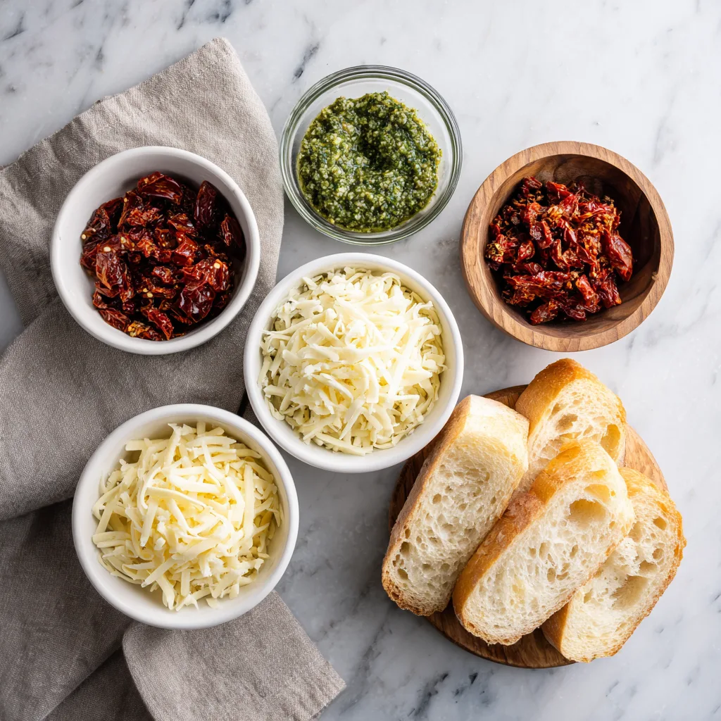 Pesto adds brightness and depth, while sun-dried tomatoes bring concentrated umami and gentle sweetness. Together, they cut through the richness of the cheese, keeping every bite exciting instead of heavy.
