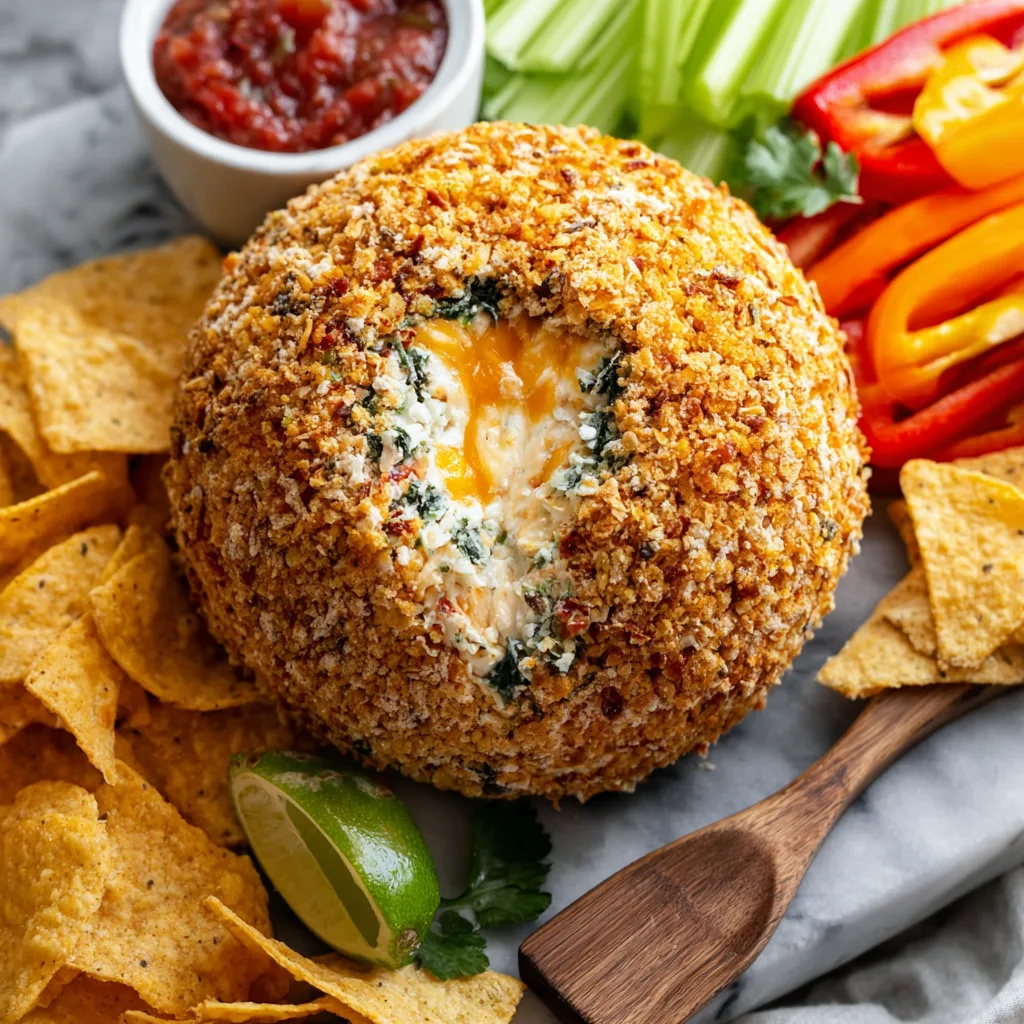 The coating is where texture comes into play. Crushed tortilla chips add crunch, chopped herbs add freshness, and extra cheese reinforces the savory theme. Every bite delivers creaminess followed by a satisfying crunch—exactly what you want in a party dip.