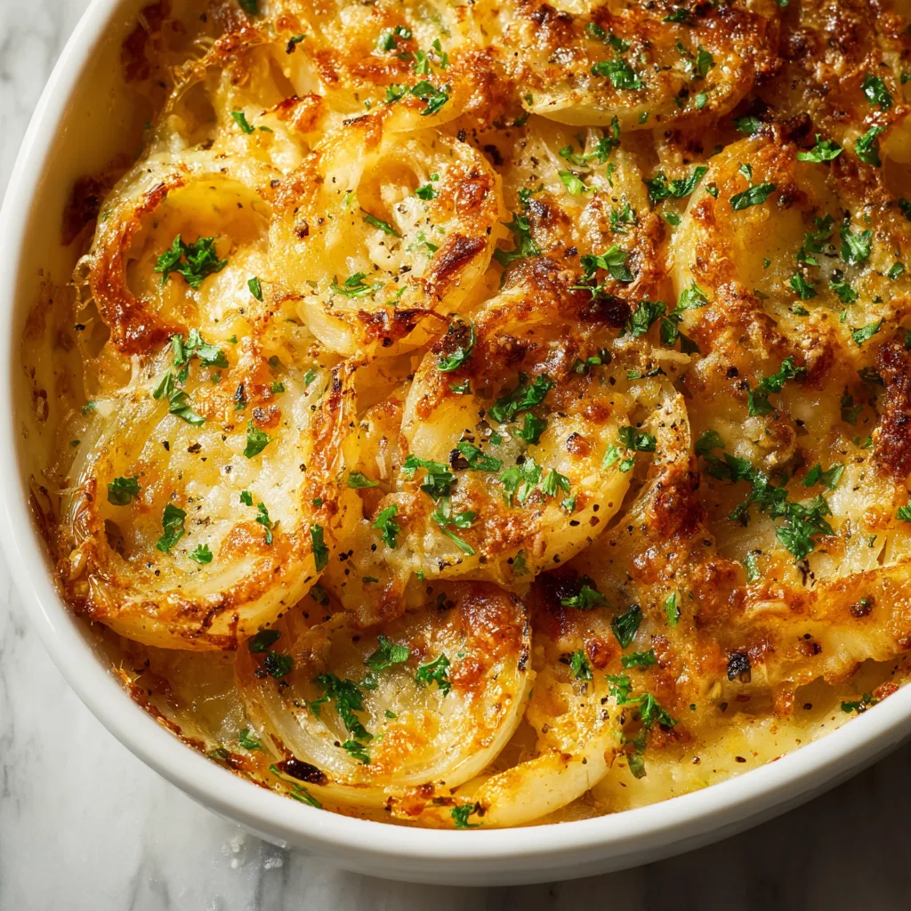 That’s it. No flour, no cream soups, no complicated sauces. The onions themselves create the base, releasing moisture as they bake and mingling with butter and cheese to form a naturally rich, savory sauce.