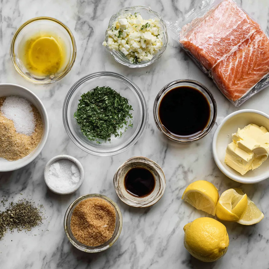 - In a medium bowl, whisk together the melted butter, brown sugar, minced garlic, lemon juice, Worcestershire sauce, soy sauce, dried parsley, and black pepper until the sugar dissolves completely and the mixture is smooth.