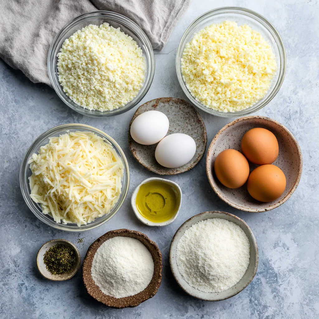 - In a large mixing bowl, combine the squeezed cauliflower, mozzarella, Parmesan, eggs, Italian seasoning, garlic powder, and salt. Mix until fully combined.