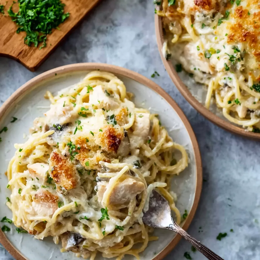 Despite the Italian-sounding name, Chicken Tetrazzini is an American dish believed to have been created in the early 1900s for Italian opera star Luisa Tetrazzini. The combination of pasta, cream sauce, mushrooms, and poultry became so iconic that the dish spread nationwide. Today, every family seems to have their own version — but this recipe takes the best elements from traditional versions and elevates them.