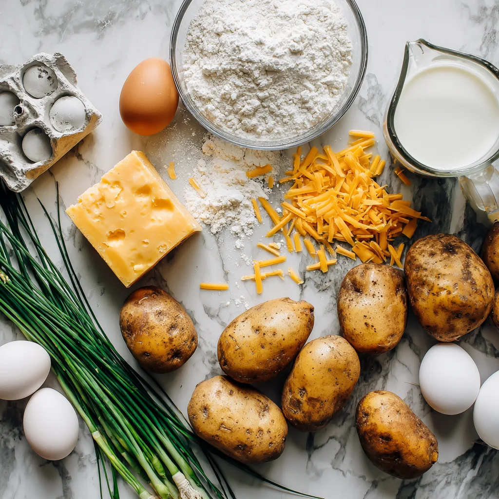 - Prepare the mixture: In a large bowl, combine cold mashed potatoes, shredded cheddar cheese, 1 beaten egg, chopped chives, garlic powder, salt, and pepper. Mix thoroughly until all ingredients are well incorporated and the mixture holds together when squeezed.