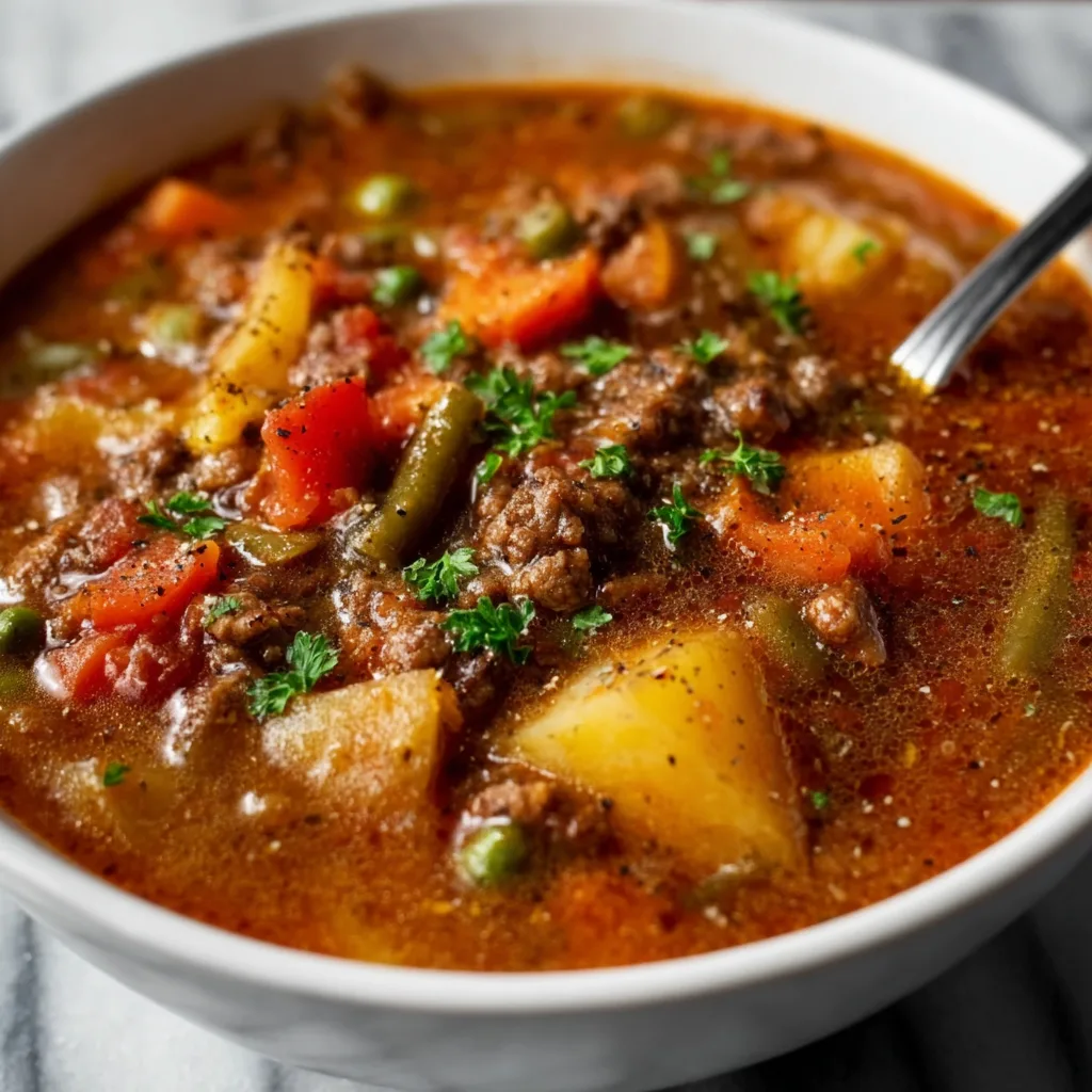 What makes this hearty hamburger stew recipe so special is its perfect balance of protein, vegetables, and warming spices. Unlike thinner soups, this stew has a luxurious, thick consistency that clings to every ingredient, ensuring each spoonful is packed with flavor. It’s the kind of meal that makes your house smell incredible while it cooks and brings the whole family to the dinner table with anticipation.