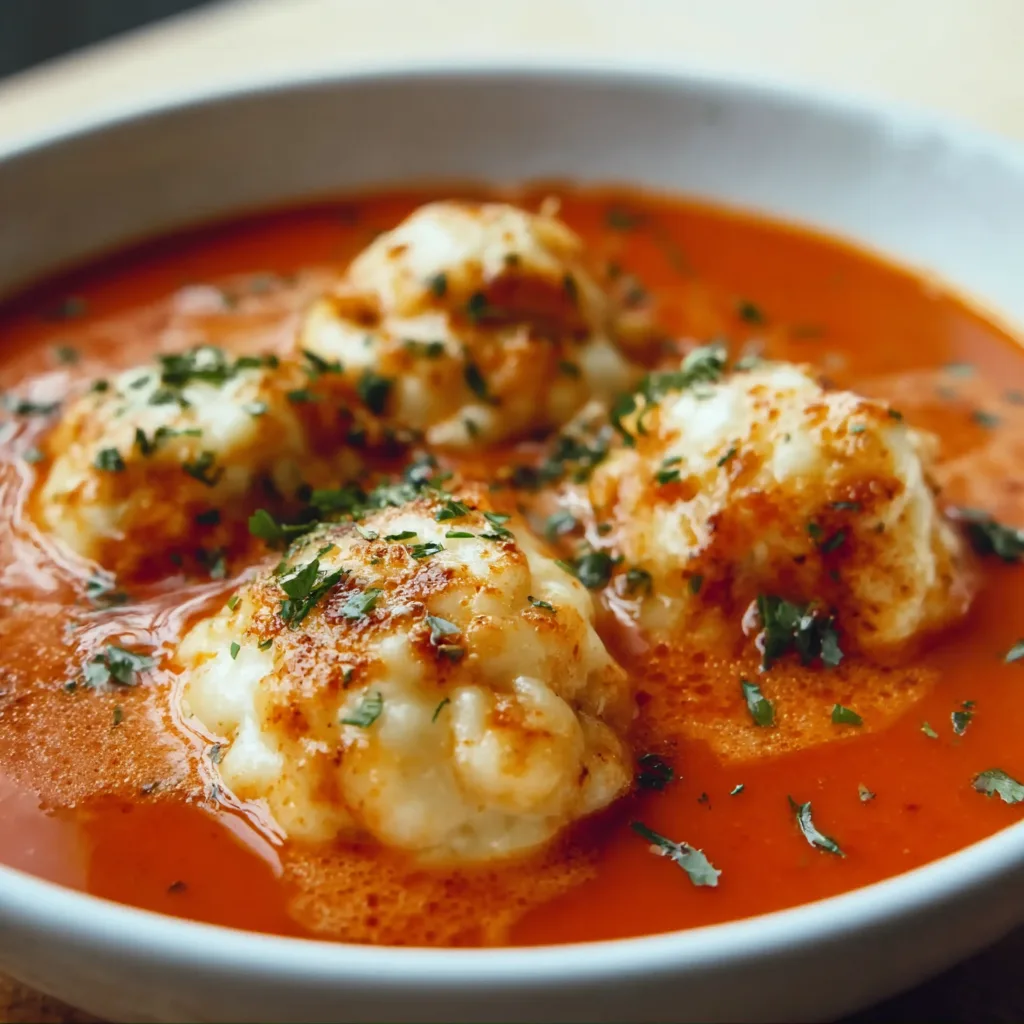 Tomato Soup with Cheese Dumplings – Creamy Comfort in a Bowl