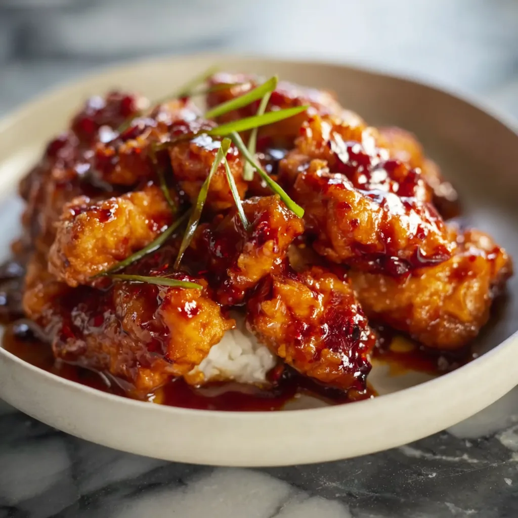 - Serve immediately while the chicken is still hot and the coating maintains its optimal crispy texture beneath the glossy sauce coating.