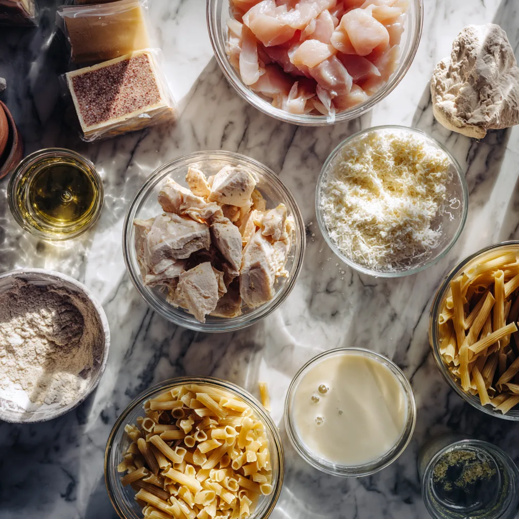 Creating the ultimate Garlic Parmesan Chicken Pasta Bake requires carefully selected ingredients that work together harmoniously. Each component plays a crucial role in developing the final flavor profile and texture.