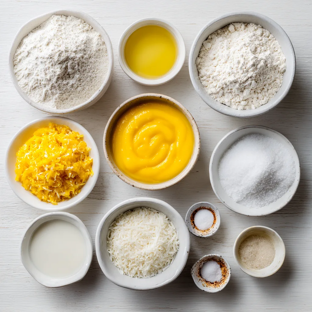 This recipe relies on smart ingredient choices rather than complicated substitutes. Coconut milk replaces dairy, neutral oil replaces butter, and mango purée contributes structure and moisture normally provided by eggs.
