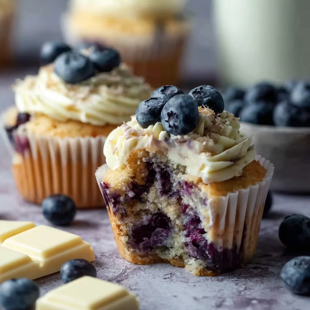 White Chocolate Blueberry Cupcakes: Bakery-Style Elegance at Home