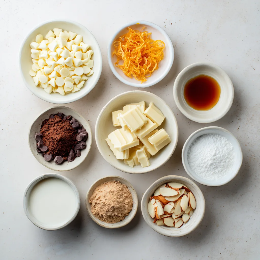 - Extra orange zest or shaved white chocolate (optional garnish)