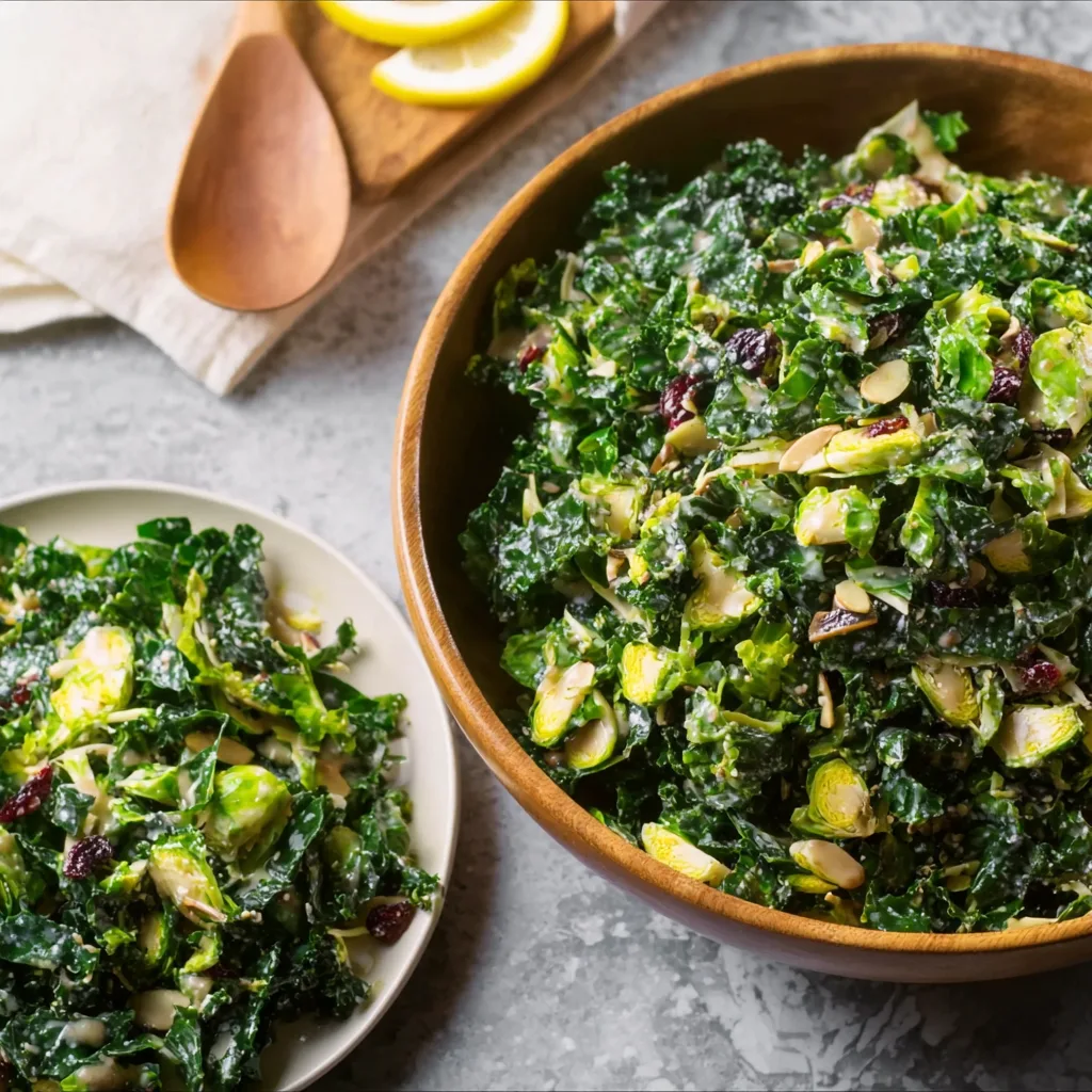 Simplicity here isn’t about being plain—it’s about balance. This recipe focuses on a short list of ingredients that complement each other naturally. The slight bitterness of kale, the crisp sweetness of shaved Brussels sprouts, a bright acidic dressing, and just enough richness from olive oil or optional add-ins like nuts or cheese.